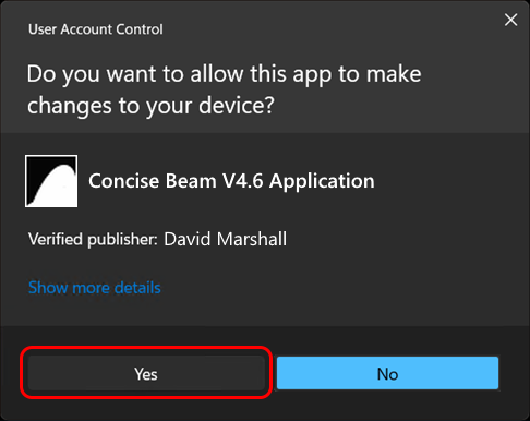 You may receive a User Account Control warning. If you see the warning below, please click on Yes.